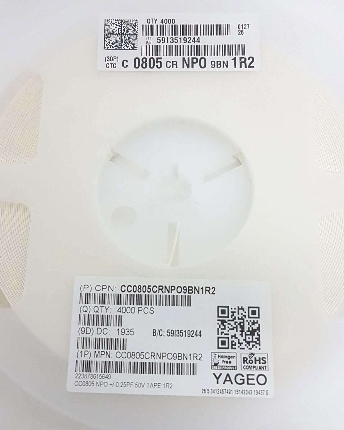 CAPACITOR CERAMICO SMD 0805 1,2PF 50V +/-0,25PF (CC0805CRNP09BN1R2)