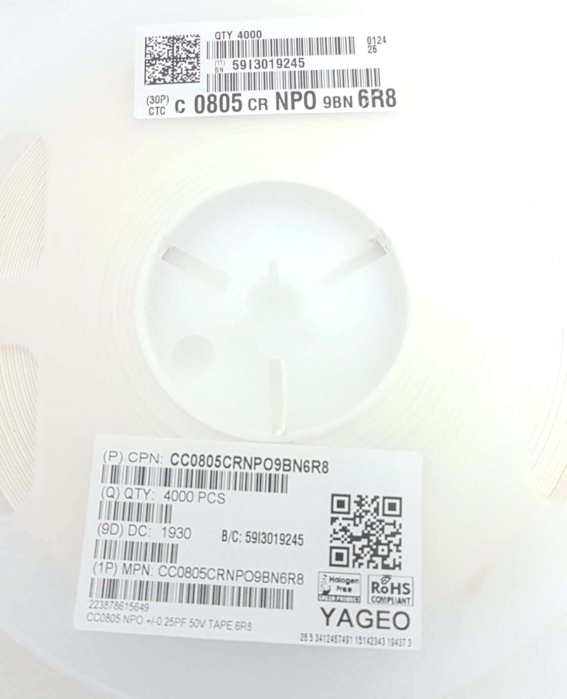 CAPACITOR CERAMICO SMD 0805 6,8PF 50V NPO +/-0,25PF